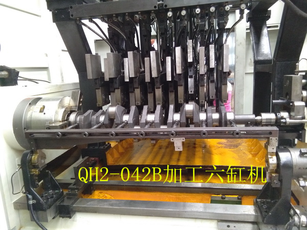 QH2-042變力曲軸圓角滾壓及滾壓校直機(jī)床(發(fā)明專利號(hào)1823602)是與武漢理工大學(xué)共同開發(fā)的一款高檔數(shù)控設(shè)備。該機(jī)床為九鉗直立布置,可以一次性對(duì)所有四缸曲軸完成的變力滾壓,自動(dòng)檢測(cè)和自動(dòng)滾壓校直的加工。該機(jī)床帶有測(cè)力器,自動(dòng)檢測(cè)工件零位,自動(dòng)檢測(cè)記錄工件加工情況和滾輪破碎自動(dòng)檢測(cè)等功能,可以完全保證工件的加工質(zhì)量。具備與著名德國(guó)的圓角滾壓設(shè)備制造商Hegenscheidt公司產(chǎn)品同樣的功能,具有極高的性價(jià)比。